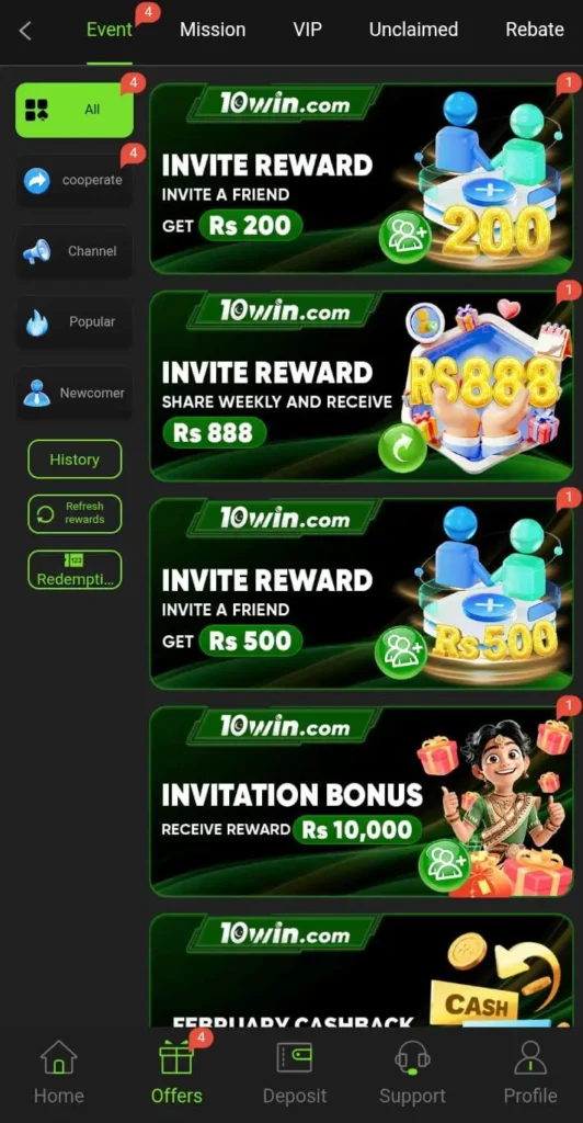The reward system is one of the most appealing aspects of 10win.
