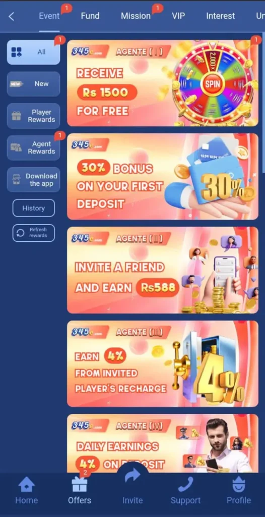 - The app may give small missions such as playing 5 games, making one deposit, or logging in daily. Completing these earns additional rewards.