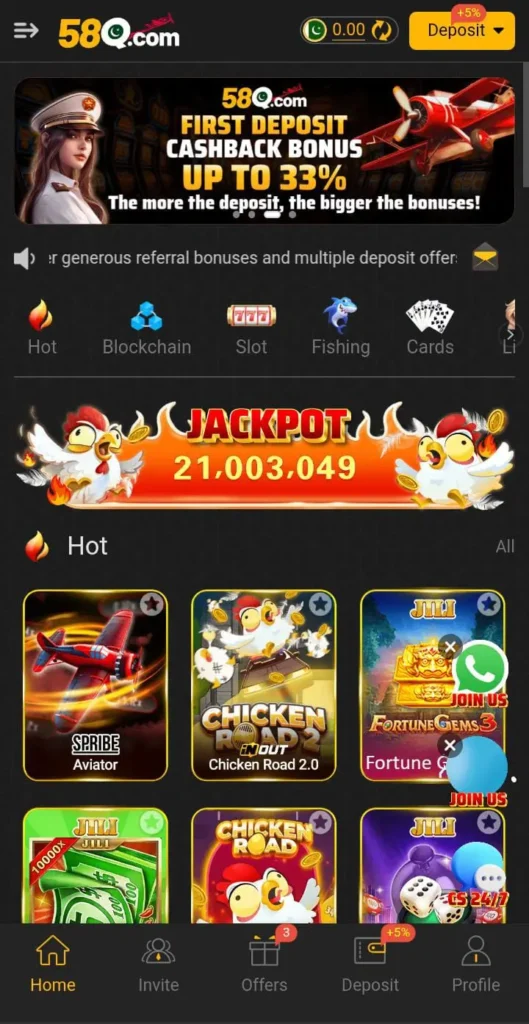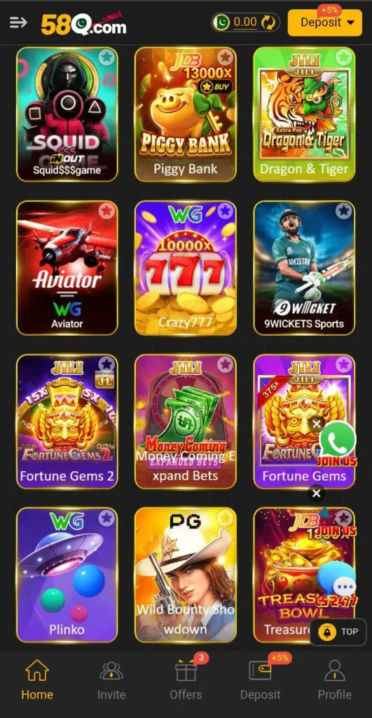 58Q Game is an online real money gaming platform where users can play different games and win cash prizes. The application is primarily created for mobile users and provides various gaming options like card games, casino games, and quick skill games. Users can begin with free bonuses and then deposit money to win more.