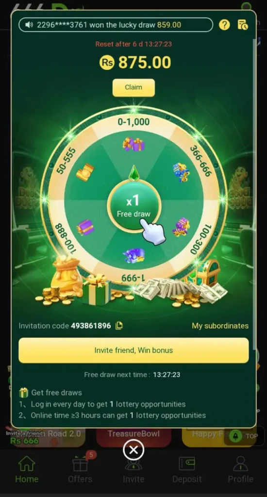 There are many bonuses for the new users and the old users. There is a welcome bonus for the new users and also there are referral systems where you can earn money by sharing the game with your friends. This game is legal for playing and it also gives you a secure payment method. Where you can use your local wallet like east paisa and jaaz cash for the transaction.