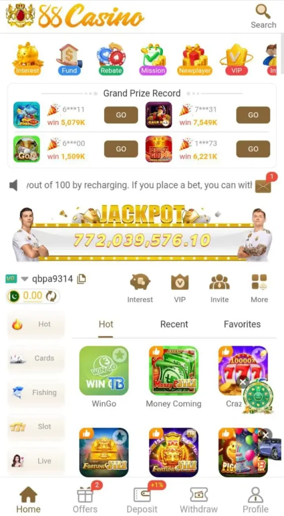 Online earning games are becoming very popular in Pakistan. Many people now look for simple mobile games that provide both entertainment and a chance to earn small rewards. Among these platforms, 88Casino Game has quickly gained attention because it offers different slot and card games in one place. Players can enjoy fun gameplay while also trying their luck to win rewards.
