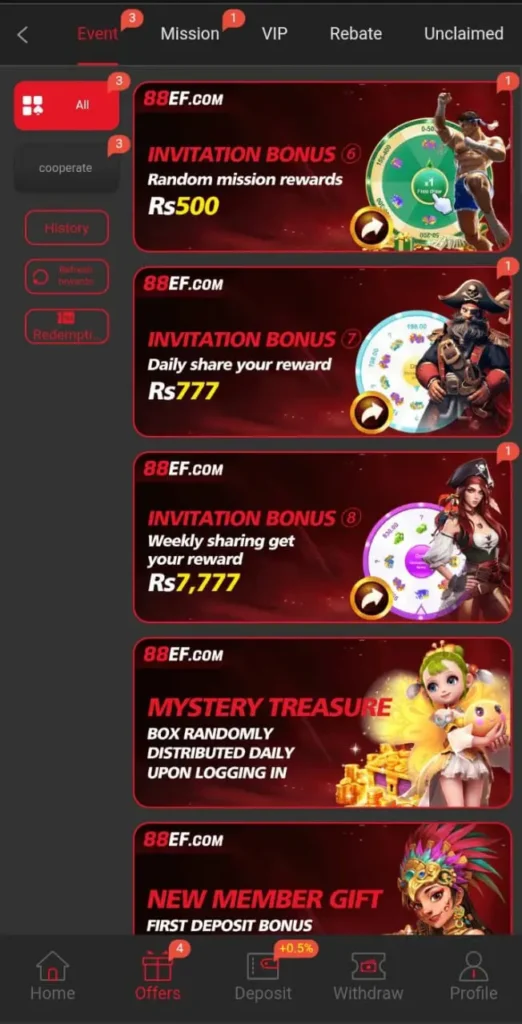One of the strongest points of the 88EF Game is its clean and intuitive user interface. The layout is designed in a way that even new users can easily understand how to navigate through different sections of the app.