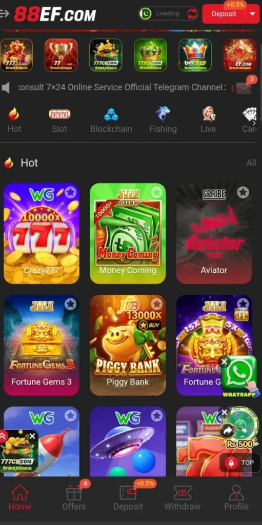 The 88EF Game offers convenient and user-friendly deposit options to ensure a smooth experience. The deposit system is designed to be quick and reliable.