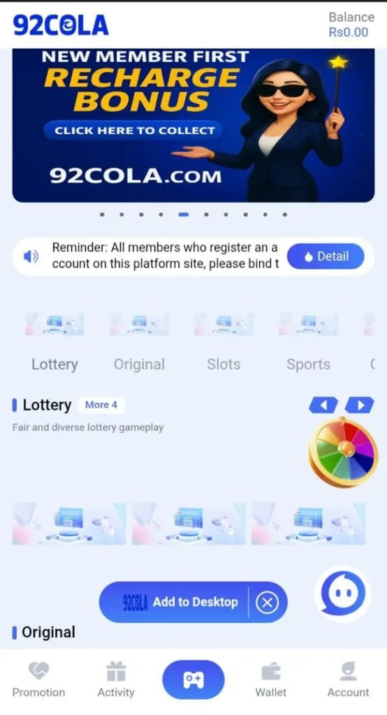 92Cola Game is an online gaming platform which is growing very fastly. This game is design for those people who love to play slots, card games, roulette and betting. The biggest attraction of the game is 92 slot machines. Where 92 combinations have the biggest winning offer. The interface of the game is simple and attractive. The beginners and pro both lovez to play this game. In Pakistan, India and other asian countries play 92Cola Game daily.