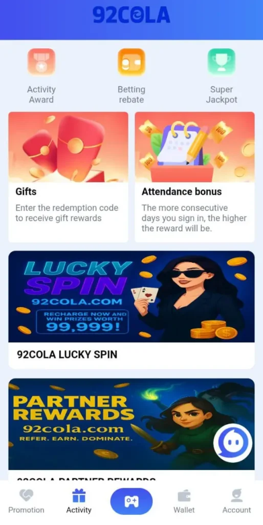 92Cola Game is an amazing and entertaining gaming platform that is perfect for those who love to play casino and slots games. The most popular feature of this game is the 92slot machine, which gives the chance to the players to win the jackpot. The interface of the game is very simple, which helps users to understand easily, and the graphics of the game are colourful and smooth, which can run the game on low devices and give a lag-free gameplay.