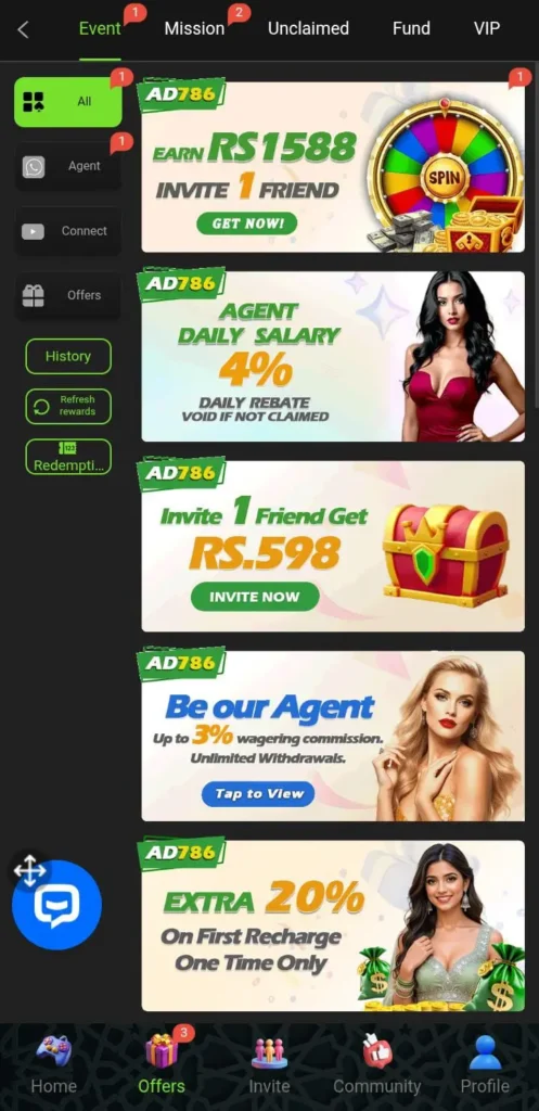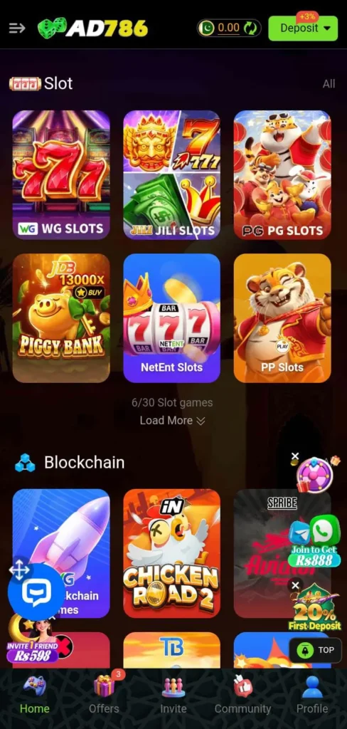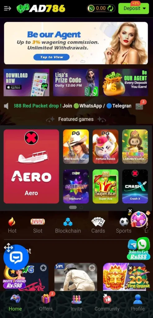 AD786 Game is an online real-money gaming application that enables users to play various games and win cash money depending on their performance and luck. The application features a range of games such as slot games, crash games, card games, and other forms of casino games. Users can deposit money into their wallet, select their preferred games, and withdraw their winnings directly from the application using the available payment options.