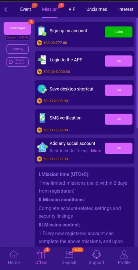 - Daily check-in bonuses