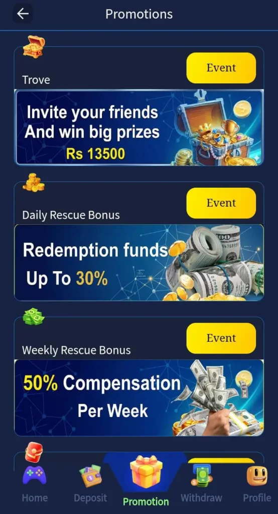 The application provides fast deposit options for players. The application allows players to withdraw their money within a short period.