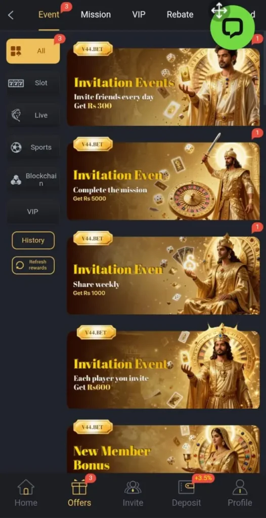 V44 Game often provides bonuses and rewards to players, such as: